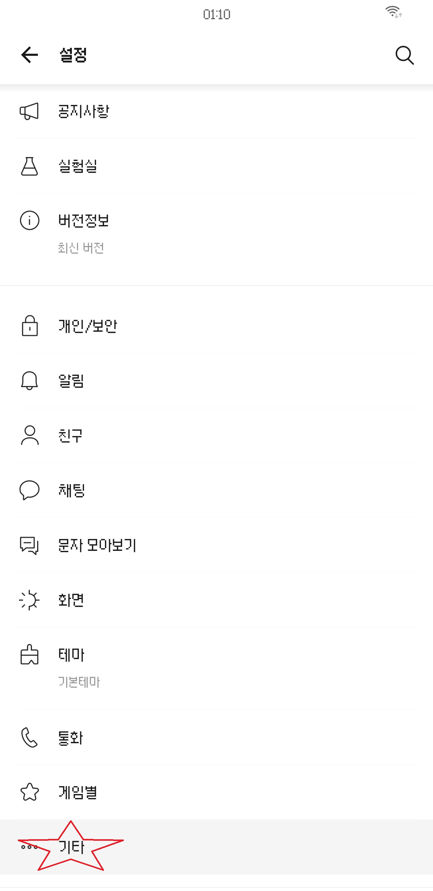2. '기타' 메뉴에 진입한다.