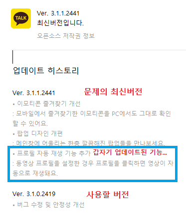 이전 버전의 카톡을 실행시킬 수가 없네요